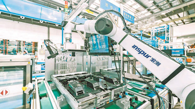 济南市孙村产业园浪潮高端装备智能工厂,机械臂在组装服务器。济南加快建设战略性新兴产业集群,以科技创新和产业升级推动区域经济高质量发展。 |