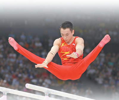 当地时间8月5日,中国队选手邹敬园在巴黎奥运会体操男子双杠决赛中。 |