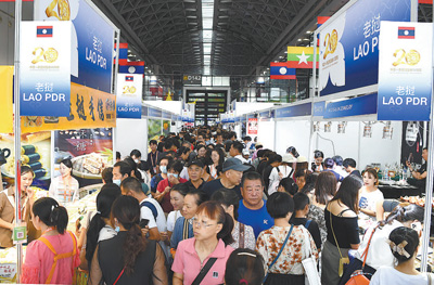 2023年9月,第二十届中国—东盟博览会公众开放日期间,观众参观东博会老挝商品馆。 |