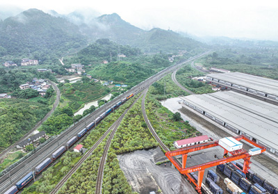 6月27日,西部陆海新通道中老泰马跨境铁路班列在重庆江津小南垭站发车(无人机照片)。该班列的开行将促进通道沿线地区与东盟国家的经贸合作和产业联动。 |