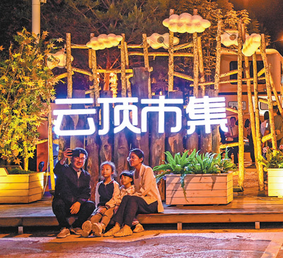 游客在吉林省长白山云顶市集游玩。 新华社记者 颜麟蕴摄