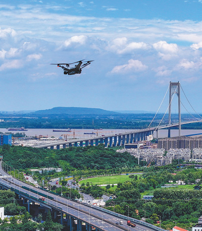 江苏南京市公路集团巡检无人机正在对栖霞山大桥南接线高速路况进行巡检。 徐 琦摄(人民视觉)