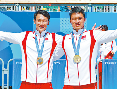 当地时间8月8日,在皮划艇静水男子双人划艇500米决赛中,中国队组合刘浩/季博文(图③,右为刘浩,新华社记者沈伯韩摄)夺得金牌。跳水男子三米板决赛中,中国队选手谢思埸(图④,本报记者厉衍飞摄)获得金牌,王宗源摘得银牌。中国队选手罗诗芳(图⑤,新华社记者杨磊摄)夺得举重女子59公斤级金牌,抓举、挺举、总成绩同时创造了3项新的奥运会纪录。