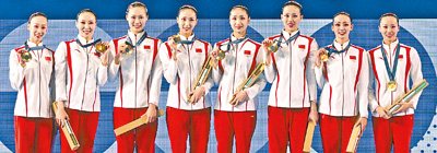 本报巴黎8月8日电 当地时间8月7日晚,中国花样游泳队(图①,本报记者雷声摄)夺得巴黎奥运会花样游泳集体项目金牌,这是中国花游队历史上首次获得奥运会金牌。举重赛场,中国队选手侯志慧(图②,本报记者厉衍飞摄)在女子49公斤级比赛中夺得冠军。