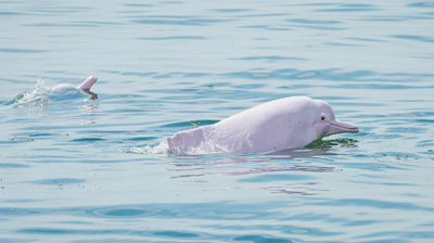 图为近日在广东湛江雷州湾拍到的中华白海豚。