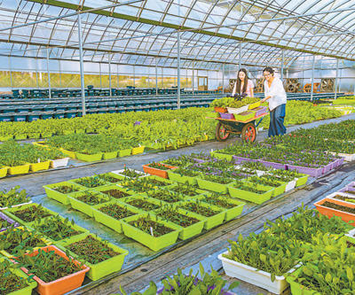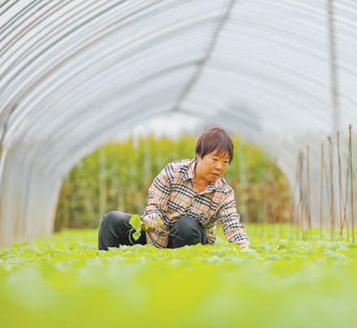 山西省运城市夏县南大里乡,设施大棚内蔬菜幼苗长势喜人。图为工作人员正在加紧播种、培育和移栽各类幼苗。 |