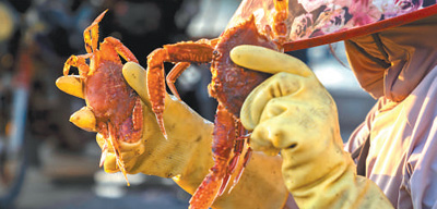 福建东山:海鲜干货和渔获产品 【特色】品种丰富,营养价值高 【产值】2023年东山水产品规模工业企业产值超156亿元 福建东山县,渔民在分拣、装筐捕捞上岸的螃蟹。 吴洲萍摄(人民视觉) |