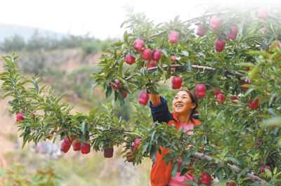 甘肃天水的苹果红了。一颗颗果实挂满枝头,勾勒出“乡亲们的生活像苹果一样红红火火”的美好图景。