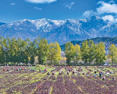 青海省海东市互助土族自治县依托海拔高、日照长等自然条件,大力发展特色种植养殖产业,有效促进农民持续增收。图为近日,东和乡黑庄村村民正在采收火焰蔘。火焰蔘亩产值可达3000元,高于小甜菜等当地传统经济作物。