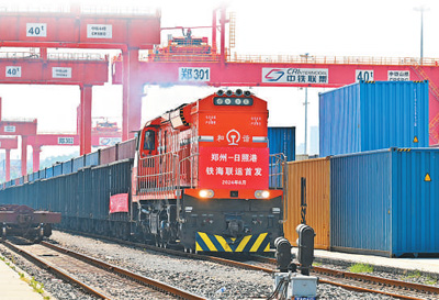 首趟郑州至日照港铁海联运班列从郑州经开区圃田站启程。 |