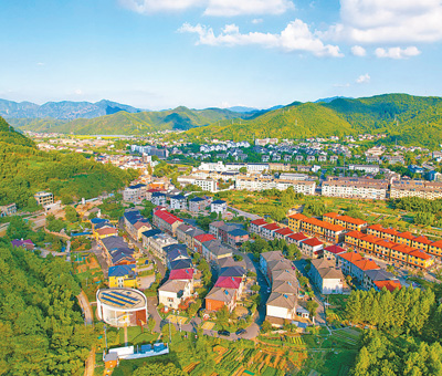 浙江省湖州市安吉县天荒坪镇余村村聚焦绿色低碳发展,推进创建“零碳”乡村。安吉县供电公司在当地建设未来乡村绿电服务中心,通过综合能源管控系统智能管控屋顶光伏、移动储能、充电桩等设备。图为安吉县的余村村和山河村。