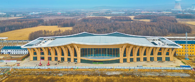 我国在建最北高铁站伊春西站,站房外部装饰装修建设10月25日正式竣工,将进入站房内部装修施工阶段,标志着在建最北高铁哈(尔滨)伊(春)高铁建设取得新进展。伊春西站外观在配色、结构和装饰上融入小兴安岭、松花江、红松等元素,展现地域文化特色。图为伊春西站建设现场。