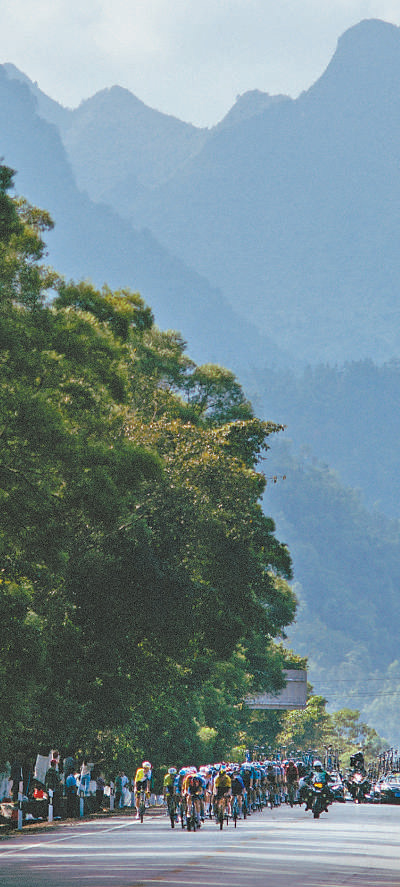2024环广西公路自行车世界巡回赛,选手在比赛中。 |