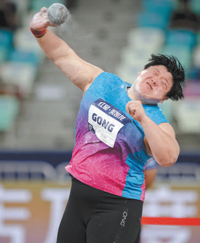 2024年世界田联钻石联赛厦门站女子铅球比赛,中国选手巩立姣投掷铅球。 |