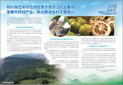 巴州区中药材现代农业园区于2022年被四川省人民政府命名为四川省五星级现代农业园区,目前已建成以枳壳为主导品种的中药材连片种植基地1.88万亩。基地采取药粮轮作、套作的方式,种植大豆、土豆、小麦等粮食作物0.9万亩。2023年,园区总产值达13.24亿元,覆盖农户29360人。其中,中药材总产值9.67亿元,带动园区内集体经济村均增收4万元,农民人均可支配收入达2.19万元。