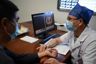 江西中医药大学附属医院的新冠肺炎后肺纤维化康复门诊,主要为确诊为新冠肺炎的恢复期患者、出院后已在隔离点完成14天康复观察、但仍有不适症状的患者或者胸部CT显示有肺纤维化病变者。该门诊实施预约制,患者提前一天通过电话或者微信公众号两种方式预约。就诊之后,康复门诊定期还会对患者进行电话回访,了解患者恢复进度,指导患者居家康复。 人民图片