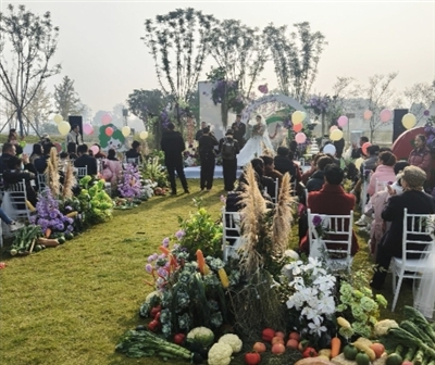 “所有装饰用的都是本地鲜蔬,仪式结束后直接送入后厨加工,既环保又经济。”承接婚礼的工作人员向中国城市报记者介绍,如今这片场地每月要举办10余场婚宴、满月宴等活动,就连伴手礼也巧用当季蔬菜编织成花篮,让自然气息延续到生活点滴。