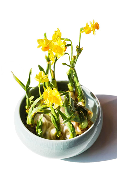 冬季水培水仙,受温度、光照、给水条件影响较大,需要保持光照充足、给水洁净,并控制好室温。水仙花球雕刻技术可调整水仙生长形态,创造出不同的艺术造型,呈现千姿百态的视觉效果。