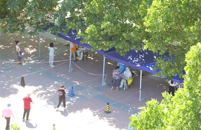 北京市丰台区一小区内进行的全员核酸检测。 |