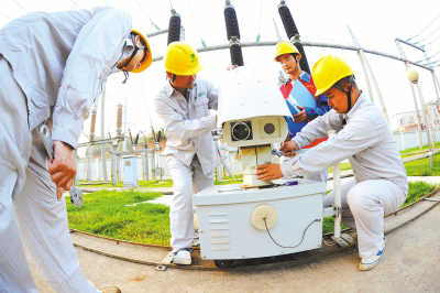 图为9月22日,该公司员工正在对220千伏九华变电站智能机器人,作“双视频远程在线监测与识别系统”的调试。