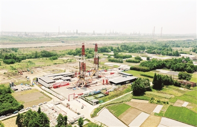 目前,川西气田已部署17口井,完钻16口井均获高产,计划2023年底全面建成投产,将为成都经济圈天然气保供提供有力支撑。图为川西气田彭州5号平台。