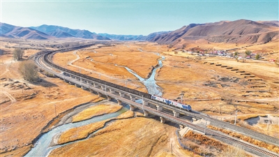 图为近日一列满载电煤的货运列车奔驰在通(通辽)霍(霍林河)铁路线上。
