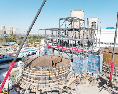 1月25日,寒风劲吹,阴雨绵绵,记者来到国家能源集团安徽公司宿州电厂(以下简称“宿州电厂”),看到一派生机勃勃的景象,两座十几米高的熔盐储罐巍然矗立,工人们在巨大的钢铁结构间穿梭,机器的轰鸣声、工具的敲击声、吊车的倒车声交织在一起。