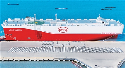 中国汽车工业协会日前公布的数据显示,今年前4个月,我国汽车产销量历史上首次双双突破1000万辆,其中新能源汽车产销量同比分别增长48.3%和46.2%,销量占汽车新车总销量的42.7%。新能源汽车出口64.2万辆,同比增长52.6%。图为4月27日,我国自主制造、已投入运营的全球最大装载量汽车运输船——比亚迪“深圳号”开启出口首航,搭载超7000辆比亚迪新能源汽车从江苏太仓港出发,前往巴西伊塔雅伊港。