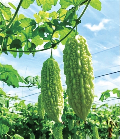 天刚蒙蒙亮,父亲已蹲在菜畦摘苦瓜。晨露从卷须上滚下来,打湿他的粗布褂子,沾泥的裤脚扫过豆角架,惊起几只绿蚂蚱。“要挑瘤子鼓的!”他举着一颗青碧的苦瓜朝我晃,凸起的棱边泛着银白,“这是老天爷给的印章,盖了章的才够苦。”竹筐渐渐满了,苦瓜蒂头的小黄花沾着露水,被朝阳照得透亮。