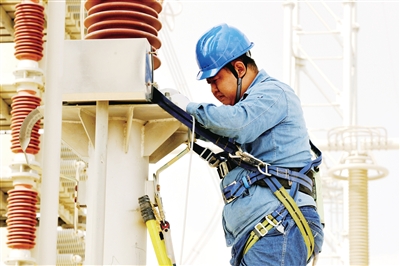作为我国“西电东送”工程的重要送端,宁夏通过灵州—绍兴±800千伏特高压直流输电工程为浙江地区输送的电量占浙江全省用电量的近十分之一。该工程自2016年投运以来,已累计向浙江输送电量4104.14亿千瓦时,相当于减排二氧化碳4.07亿吨,取得了环保效益和社会效益双丰收。图为10月4日国网宁夏超高压公司职工正在宁夏灵武市±800千伏灵州换流站开展年度综合检修现场。本次检修将历时12天,计划消除缺陷近240项。