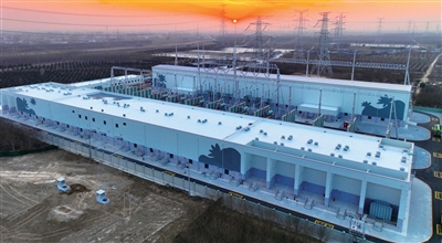 12月7日,雄安新区新能源输送通道关键枢纽变电站——雄安500千伏变电站正式投运。该站是雄安第二座500千伏新建变电站,向西联通保定1000千伏特高压变电站,向南通过双回电缆通道直入雄安新区腹地,能够把内蒙古的光能、张北的风能源源不断地输送至千家万户,为进一步完善新区电网网架结构,为新区实现100%绿电供应奠定更坚实的基础。图为雄安500千伏变电站全貌。