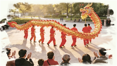 元宵节临近,市民公园的中心广场上,锣鼓声乍起。鼓点初起时犹如密雨敲窗,瞬间将人群吸引过来。