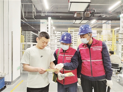图为5月8日,国网辛集市供电公司工作人员走访企业,了解企业用电需求。路冲/摄 |