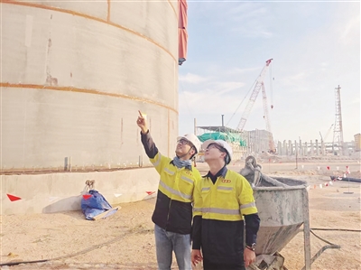 在工业园东南角,蔚蓝的海滨旁,一块18万平方米的土地上,几个巨大罐体初现雏形,7台塔器高耸入云。今年底,泰国最先进的天然气处理厂——泰国第七天然气处理厂(以下简称“第七天然气处理厂”)将在这里拔地而起,为泰国经济社会发展提供稳定的能源保障。目前,该项目总体进度为79.20%,现场施工进入全面冲刺阶段。